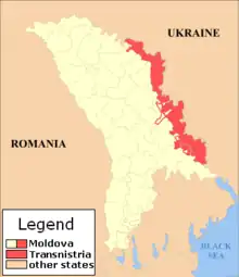 On 25 August, the day before Russia's recognition, Dmitry Medvedev met with President of Moldova Vladimir Voronin, where the Russian leader made it clear that Moscow is ready to solve the Transnistria conflict within the framework of the sovereignty of the Republic of Moldova with the maximum effort. Relations between Moldova and Transnistria worsened after Moldova refused to support the independence of Abkhazia and South Ossetia.[63]