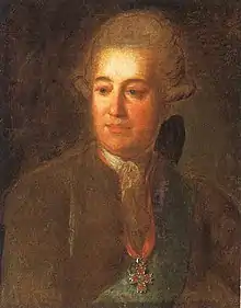 Count Ivan Illarionovich Vorontsov (Russian: Иван Илларионович Воронцов; 1719-1786) was a senator, acting chamberlain, president of the Collegium of Estates in Moscow.