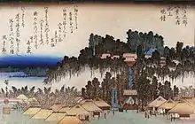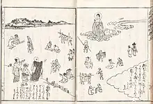 In the Edo Period, Buddhist institutions procured funding through various ritual means, such as the sale of talismans, posthumous names and titles, prayer petitions, and medicine.[86] The practice of pilgrimage was also prominent in the Edo Period. Many temples and holy sites like Mt. Kōya, Mt. Konpira and Mt. Ōyama (Sagami Province) hosted Buddhist pilgrims and mountain ascetics throughout the era.[87]