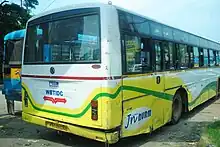 A low-floor bus by JNNURM scheme used by West Bengal Transport Infrastructure Development Corporation Limited, in the capital city of Kolkata