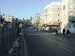 At ash-Shiyah Street at the edge of Abu Dis, the Israeli West Bank barrier has been erected. Originally including a security checkpoint, the road was permanently closed in 2006. Past the barrier, the road continues as a commercial artery through Abu Dis, al-Eizariya and Jahalin.
