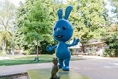 Kikanichen is a blue friendly rabbit, which is a segment on KiKA that airs on weekdays only between 6:00AM and somewhere around 10:30AM. There, they air Preschool shows. His friends are Anni, Jule and Christian. He also loves playing fun and educational games with other kids or his friends. His catchphrase is "Dibedibedab".