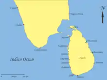 At the request of King Senerath, as Lord High Admiral, he built a fleet of 3 war galleys and 3 yachts.[15] They were crewed by Kandyans and the nephew of Kuruvita Rala was appointed as Admiral and Wandige Nai Hami[16] was appointed as the Vice Admiral.[15] They sailed out from Kottiyar bay at Trincomalee on 16 May 1612, with orders to "…intercept and capture the enemy vessels navigating between Cape Comoryn and Ceylon with instructions not to give quarters to the Portugezen or any enemies of the state, save the women children and slaves..(sic)".[15]