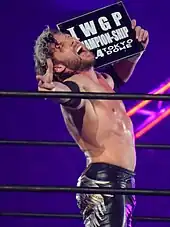 On October 23, Omega defeated Kai to become the new World Junior Heavyweight Champion.[43] He lost the title back to Kai on May 27, 2012, in his sixth title defense.[44] On December 23, Omega defeated El Generico to win the KO-D Openweight Championship for the first time.[45] On January 27, 2013, Omega defeated Isami Kodaka in a title vs. title match, retaining his title and winning the DDT Extreme Championship held by Kodaka.[46] He lost the KO-D Openweight Championship to Shigehiro Irie on March 20, 2013.[47] On May 26, Omega, Ibushi, and Gota Ihashi defeated Yuji Hino, Antonio Honda, and Daisuke Sasaki to win the KO-D 6-Man Tag Team Championship.[48] Omega's team lost the championship to Hino, Honda, and Hoshitango.[49] On August 25, Omega lost the DDT Extreme Championship to Danshoku Dino.[50]