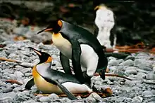- 1 2 Stonehouse, B (1960). "The King Penguin Aptenodytes patagonicus of South Georgia I. Breeding behaviour and development". Falkland Islands Dependencies Survey Scientific Report. 23: 1–81.