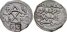Medieval Georgia used a variety of languages on its coins. Some coins featured Greek inscriptions alongside Georgian.[65] Dimitri I, Giorgi III, David IV, and T'amar struck coins bearing the titles "malik al-mulūk" and "malikat al-malikāt", respectively.[9] According to Brosset, Georgia used Arabic as a lingua franca because of the importance of trade relations with the Islamic world.[9] Karst keeps on in this direction, saying that the bilingual coins served as an official and visible symbol of the cordial relationship between Georgia and the Caliphate.[9] Georgian coins again showed signs of foreign influence when the kingdom of Georgia came under the Mongol rule in the late 13th and early 14th centuries, combining inscriptions in Georgian, Arabic, and Persian.[10]
