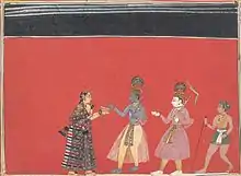 ![]() Krishna accepts an offering from the hunchbacked woman, Trivakra (Kubja) | |