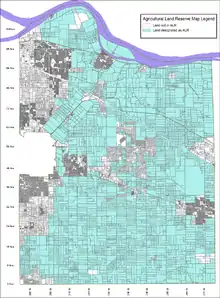 Langley's growth increased during the economic boom after the Second World War. In 1957, Langley Township, along with other municipalities in British Columbia adopted the grid system for the road network.[12] In 1967, Langley Township became part of Metro Vancouver. As with many other parts of Canada and cities in the United States, the Vancouver region expanded with the growth of the suburb. With the completion of the faster Trans-Canada Highway route in 1964 in the north of Langley, suburb communities such as Walnut Grove appeared in Langley which were popular with commuters. Most of this growth happened outside of the original communities of Fort Langley and Murrayville, instead happening adjacent to Langley City and near the Trans-Canada highway, likely due to the influence of private automobiles.