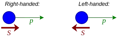 A closely related property is chirality, which in turn is closely related to a more easily visualized property called helicity. The helicity of a particle is the direction of its spin relative to its momentum; particles with spin in the same direction as their momentum are called right-handed and they are otherwise called left-handed. When a particle is massless, the direction of its momentum relative to its spin is the same in every reference frame, whereas for massive particles it is possible to 'overtake' the particle by choosing a faster-moving reference frame; in the faster frame, the helicity is reversed. Chirality is a technical property, defined through transformation behaviour under the Poincaré group, that does not change with reference frame. It is contrived to agree with helicity for massless particles, and is still well defined for particles with mass.