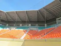 Mayaguez won the 1948–49 championship with a roster that included Canena Marquez and Luke Easter.[23] That same year, the LBPPR joined the Caribbean Series, beginning a rivalry with the Cuban League's champion that lasted throughout the next decade, until Cuba ceased to participate in the event.[24] A decade after its foundation, the league was employing an 80-game schedule. Several new ballparks have been built by the 1949–50 season, this was due to an attendance average of 750,000.[10] Each of the stadiums built surpassed 6,000 seats, with Ponce's Paquito Mountaner reaching 9,718 seats by then.[10] The installation of lights that allowed the organizations of games at night increased attendance. Estadio Sixto Escobar had a maximum capacity of over 15,000, with 13,135 seats.[25] Percucho Cepeda was one of the league's dominant figures during the 1940s, winning two batting championships and a Most Valuable Player award. Natalio Irizarry won the league's Rookie of the Year recognition in 1949–50.[26] From 1949 to 1955, the league featured the participation of new MLB players, including Johnny Logan, Harvey Haddix and Hank Aaron among several others.[27] The players began choosing the league to play due to its competitive level and warm climate during the winter, a custom that has continued until the current decade. Players of the Negro leagues preferred it due to lack of racism towards the players, as opposed to the United States.[28]