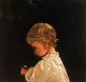 By 1901 Perry had returned to Boston to their home on Marlborough Street[5] and two years later they bought a farmhouse in Hancock, New Hampshire, as a summer house.[5] It was during her time in Hancock that Perry conceived Boy Fishing (1929), which featured a local farm boy (known to be Robert Eaton Richardson, Sr.), a painting that is now part of the White House Art Collection. In 1904, her Portrait of Mrs. Joseph Clark Grew [Alice Perry] won a bronze medal at the prestigious International Louisiana Purchase Exhibition in St. Louis.[5] The upcoming years would prove to be difficult for Perry's personal life. In 1905 she returned to France and by the winter of the same year, her health had collapsed.[11] Frequent moves, losses due to unprofitable investments,[11] and having spent most of the inheritance from her father,[16] meant that Perry constantly needed to commission portraits to support the family, which took a toll on her health.[11][16]