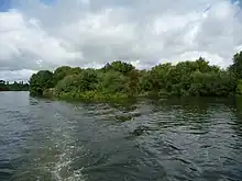 Lion Island is a small uninhabited island in the River Thames in England on the reach above Old Windsor Lock, near Old Windsor, Berkshire. The island is a thin wooded strip separated by a narrow channel on the north bank. It is just above Old Windsor Weir and the head of New Cut which leads to Old Windsor Lock.