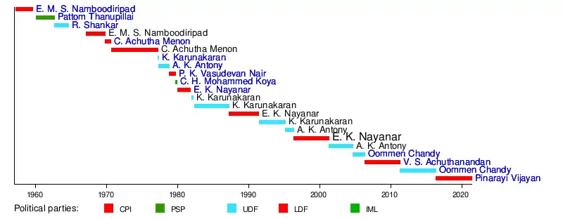 Pinarayi VijayanOommen ChandyV. S. AchuthanandanOommen ChandyE. K. NayanarC. H. Mohammed KoyaP. K. Vasudevan NairA. K. AntonyK. KarunakaranC. Achutha MenonR. ShankarPattom ThanupillaiE. M. S. Namboodiripad