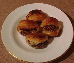 Pastry | Fried pastry originating from Hayrabolu made from cheese and semolina, decorated with tahin and hazelnuts. It resembles the Kemalpaşa tatlısı |