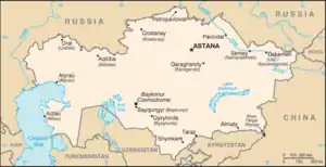This is a List of islands of Kazakhstan. There are several inland islands with Kazakhstan, including those on Lake Balkash, Lake Tengizi, the Caspian Sea, and the Aral Sea within Kazakhstan with islands. Click on the OpenStreetMap link to see the location of notable islands of Kazakhstan.[1][2][3]