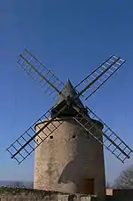 - ↑ This windmill is of a location named after a watermill being the heart of a large property (usually called "Le moulin des Roberts" because it used to belong to the Robert family). According to the "Archives départementales de Vaucluse", these two mills were in the 18th and 19th century the biggest for production in the Gordes area.