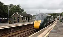 Lostwithiel railway station (Cornish: Lostwydhyel) serves the town of Lostwithiel in Cornwall, England. It is 277 miles 36 chains (277.45 mi; 446.5 km) from the zero point at London Paddington measured via Box and Plymouth Millbay.[1] Great Western Railway operates the station along with every other station in Cornwall.