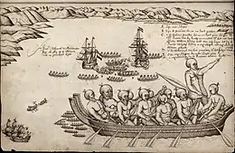 The Māori that clashed with Abel Tasman's crew at Golden Bay in December 1642 were of Ngāti Tūmatakōkiri, and it is sometimes theorised that Ngāti Tūmatakōkiri may have interpreted the Dutch as patupaiarehe.[40] Another theory suggests that the iwi was concerned about the intruders possibly waking the taniwha Ngārara Huarau in anchoring too close to a certain point.[41]