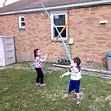Executive function refers to a specific set of cognitive operations that encompasses inhibitory control, working memory, and cognitive flexibility. Inhibitory control has been particularly associated with pretend play, especially during play that involves substitution of objects such as pretending a stick is a sword. Usually the child's ability to inhibit the real identity of an object in order to treat it with its pretend identity varies with age[7] and what attributes the child needs to ignore, form and/or function.[8] Overall, prior research has shown that pretend play activities can improve a child's executive function, but whether the act of pretending or some other part of the activity such as practice inventing a story or building a fortress is responsible is still an open question.[9]