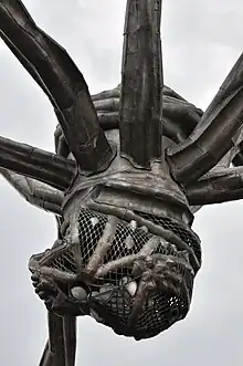 Maman (1999) is a bronze, stainless steel, and marble sculpture in several locations by the artist Louise Bourgeois. The sculpture, which depicts a spider, is among the world's largest, measuring over 30 ft high and over 33 ft wide (927 x 891 x 1024 cm).[1] It includes a sac containing 32 marble eggs and its abdomen and thorax are made of rubbed bronze.