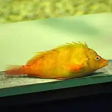 | Yellow assessor | Assessor flavissimus | Yes | Bright lemon yellow with peach fringing of the dorsal fin and around the eye. | 7 cm (2.8 in)[44] | |