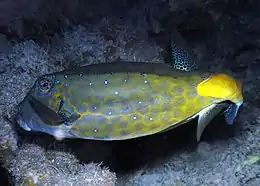 - ↑ "Pseudobatos glaucostigmus, Speckled guitarfish".