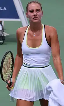 At the US Open, she beat former top-10 player Daria Kasatkina, in straight sets in the first round. She then beat former semifinalist and 31st seed Anastasija Sevastova.[16] In the third round, she met former champion and world No. 9, Naomi Osaka. She overcame a first set deficit by winning the second in a tie-breaker, but was beaten in the third.[17][18]