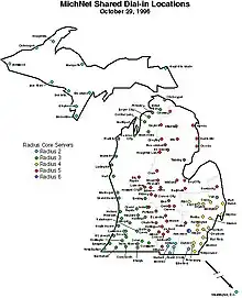 MichNet Shared Dial-in Map, c. 1996