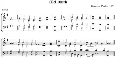 Sternhold and Hopkins wrote almost all of their Psalms in the "common" or ballad metre. Their versions were quite widely circulated at the time; copies of the Sternhold and Hopkins psalter were bound with many editions of the Geneva Bible, and their versions of the Psalms were used in many churches. The Sternhold and Hopkins psalter was also published with music, much of it borrowed from the French Geneva Psalter. One setting from their collection that has survived is the metrical form of the Psalm 100 attributed to William Kethe, with the tune known as the Old 100th, often used as a doxology: