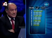 Milyonêr (English translation: Millionaire) is an Iraqi Kurdish-language game show based on the original British format of Who Wants to Be a Millionaire? The show is hosted by Shuan Haco. The main goal of the game is to win 100 million Iraqi dinars by answering 15 multiple-choice questions correctly. There are three lifelines - fifty fifty, phone a friend and ask the audience.