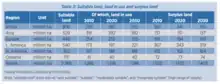 Researchers predict an average yield of 14.6 dry tonnes per hectare per year for miscanthus on marginal land in China, 12.6% below expected average yield on arable land. They calculate that miscanthus on marginal land in China can produce 31.7 EJ (exajoule) of energy annually,[18] an amount equivalent to 39% of the country's 2019 coal consumption.[lower-alpha 42] An individual trial in Ireland showed an average delayed yield of 9 tonnes per hectare per year on a site troubled by low temperatures, waterlogging during winter, and dried out, cracked soil during summer.[19] Researchers reported yields ranging from 17 to 31 tonnes on a variety of soils in the USA (Kentucky, Illinois, Nebraska, New Jersey, Virginia and North Carolina), and compared those to a specific trial with lightly fertilised 3 year old miscanthus crops on eroded claypan soils, common in the Midwest (a claypan is a layer of clay beneath the topsoil, which make the soil marginal for grain crops.) The miscanthus crops yielded 20–24 tonnes per hectare per year (delayed harvest). The authors concluded that "[...] eroded claypan soils may not negatively impact Miscanthus establishment or yield."[20]