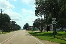 MS 149 begins at an intersection with US 49 and MS 16 in Yazoo City, Yazoo County, heading west concurrent with MS 16 on East Broadway Street, a three-lane road with a center left-turn lane. The road heads through wooded areas with some homes and businesses, narrowing to two lanes and continuing west-northwest. The highway becomes lined with homes before it reaches the commercial downtown of Yazoo City, where the name changes to West Broadway Street at the Main Street intersection. MS 16/MS 149 heads out of the downtown area and crosses Canadian National Railway's Yazoo Subdivision line at-grade adjacent to the Yazoo City station serving Amtrak's City of New Orleans train. The road runs past homes and businesses before it reaches an interchange with MS 3 at the western edge of Yazoo City. Past this interchange, the highway becomes unnumbered and crosses the Yazoo River before heading through a mix of farmland and woodland. MS 16/MS 149 crosses Broad Lake and continues through rural land, turning northwest and entering Humphreys County.[4][9]