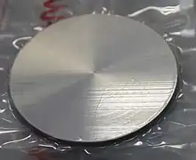 In its pure form, molybdenum is a silvery-grey metal with a Mohs hardness of 5.5 and a standard atomic weight of 95.95 g/mol.[12][13] It has a melting point of 2,623 °C (4,753 °F), sixth highest of the naturally occurring elements; only tantalum, osmium, rhenium, tungsten, and carbon have higher melting points.[7] It has one of the lowest coefficients of thermal expansion among commercially used metals.[14]