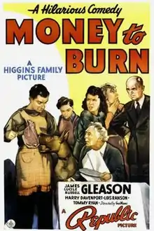 Money to Burn is a 1939 American comedy film directed by Gus Meins and written by Jack Townley. The film stars James Gleason, Lucile Gleason, Russell Gleason, Harry Davenport, Lois Ranson and Tommy Ryan. The film was released on December 31, 1939, by Republic Pictures.[1][2][3]