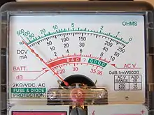 The first Avometer had a sensitivity of 60 Ω/V, three direct current ranges (12 mA, 1.2 A, and 12 A), three direct voltage ranges (12, 120, and 600 V or optionally 1,200 V), and a 10,000 Ω resistance range. An improved version of 1927 increased this to 13 ranges and 166.6 Ω/V (6 mA) movement. A "Universal" version having additional alternating current and alternating voltage ranges was offered from 1933 and in 1936 the dual-sensitivity Avometer Model 7 offered 500 and 100 Ω/V.[5] Between the mid 1930s until the 1950s, 1,000 Ω/V became a de facto standard of sensitivity for radio work and this figure was often quoted on service sheets. However, some manufacturers such as Simpson, Triplett and Weston, all in the USA, produced 20,000 Ω/V VOMs before the Second World War and some of these were exported. After 1945–46, 20,000 Ω/V became the expected standard for electronics, but some makers offered even more sensitive instruments. For industrial and other "heavy-current" use low sensitivity multimeters continued to be produced and these were considered more robust than the more sensitive types.