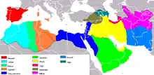 The following timeline can serve as a rough visual guide to the most important polities in the Islamic world prior to the First World War. It covers major historical centers of power and culture, including Arabia, Mesopotamia (modern Iraq), Persia (modern Iran), Levant (modern Syria, Lebanon, Jordan, and Israel/Palestine), Egypt, Maghreb (north-west Africa), Sahel (West Africa-central Africa-East Africa), Swahili Coast, al-Andalus (Iberia), Transoxania (Central Asia), Hindustan (including modern Pakistan, North India and Bangladesh), and Anatolia (modern Turkey). It is necessarily an approximation, since rule over some regions was sometimes divided among different centers of power, and authority in larger polities was often distributed among several dynasties. For example, during the later stages of the Abbasid Caliphate, even the capital city of Baghdad was effectively ruled by other dynasties such as the Buyyids and the Seljuks, while the Ottoman Turks commonly delegated executive authority over outlying provinces to local potentates, such as the Deys of Algiers, the Beys of Tunis, and the Mamluks of Iraq.