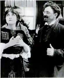 Speculation once abounded that Leon Trotsky appeared in the film as an extra, based in part on a shot of Young with a bearded man with a resemblance to the man. Though this claim started appearing as early as 1918 and was vouched for by actors in the film, and was often repeated,[13][14][15][16][17] the story was always specious and has been discredited.[18] Trotsky was not in the United States in 1914, and he denied reports made during his life about alleged film appearances.[19] The film also possibly had a young Rudolf Valentino as an uncredited extra, though this claim cannot be verified, as Vitagraph Studios head Albert E. Smith made a number of claims that later caused skepticism.[20]