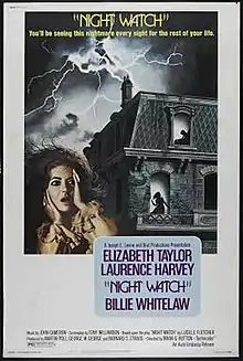 Night Watch is a 1973 mystery thriller film directed by Brian G. Hutton from a screenplay by Tony Williamson, based on the 1972 play of the same name by Lucille Fletcher.[1] The film reunited Elizabeth Taylor with co-star Laurence Harvey from their 1960 collaboration BUtterfield 8.[2] It was the last time the pair acted together on screen.[3] Some of the story elements recall the plot outline of the 1944 film Gaslight.[4]