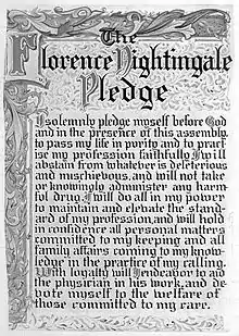 - ↑ "Florence Nightingale Pledge". NursingWorld. American Nurses Association. Archived from the original on 21 August 2016. Retrieved 5 March 2013.