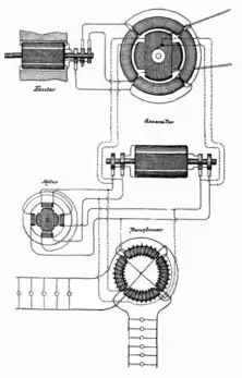 By the beginning of 1893, Westinghouse engineer Charles F. Scott and then Benjamin G. Lamme had made progress on an efficient version of Tesla's induction motor. Lamme found a way to make the polyphase system it would need compatible with older single-phase AC and DC systems by developing a rotary converter.[110] Westinghouse Electric now had a way to provide electricity to all potential customers and started branding their polyphase AC system as the "Tesla Polyphase System". They believed that Tesla's patents gave them patent priority over other polyphase AC systems.[111]