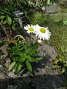 Nipponanthemum nipponicum, common names "Nippon daisy" or "Montauk daisy," is a plant species native to coastal regions of Japan but cultivated as an ornamental in other regions.[3][4] It is now naturalized as an escapee along seashores in New York and New Jersey.[5][6] It is the only species in the genus Nipponanthemum, formerly considered part of Chrysanthemum.[7][8]
