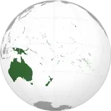 The United Nations (UN) has used its own geopolitical definition of Oceania since its foundation in 1947, which utilizes four of the five subregions from the 19th century; Australasia, Melanesia, Micronesia, and Polynesia. This definition consists of discrete political entities, and so excludes the Bonin Islands, Hawaii, Clipperton Island and the Juan Fernández Islands, along with Easter Island — which was annexed by Chile in 1888.[67] It is used in statistical reports, by the International Olympic Committee, and by many atlases.[68] The UN categorizes Oceania, and by extension the Pacific area, as one of the major continental divisions of the world, along with Africa, Asia, Europe and the Americas. Their definition includes American Samoa, Australia and their external territories, the Cook Islands, Federated States of Micronesia, French Polynesia, Fiji, Guam, Kiribati, the Marshall Islands, Nauru, New Caledonia, New Zealand, Niue, the Northern Mariana Islands, Palau, Papua New Guinea, Pitcairn Islands, Samoa, the Solomon Islands, Tokelau, Tonga, Tuvalu, Vanuatu, Wallis and Futuna, and the United States Minor Outlying Islands (Baker Island, Howland Island, Jarvis Island, Midway Atoll, Palmyra Atoll, and Wake Island).[67] The original UN definition of Oceania from 1947 included these same countries and semi-independent territories, which were mostly still colonies at that point.[69] Hawaii had not yet become a U.S. state in 1947, and as such was part of the original UN definition of Oceania. The island states of Indonesia, Japan, the Philippines, Singapore and Taiwan, all located within the bounds of the Pacific or associated marginal seas, are excluded from the UN definition. The states of Hong Kong and Malaysia, located in both mainland Asia and marginal seas of the Pacific, are also excluded, as is the nation of Brunei, which shares the island of Borneo with Indonesia and Malaysia. Further excluded are East Timor and Indonesian New Guinea/Western New Guinea, areas which are biogeographically or geologically associated with the Australian landmass.[70][71] The CIA World Factbook also categorizes Oceania as one of the major continental divisions of the world, but the name "Australia and Oceania" is used. Their definition does not include all of Australia's external territories, but is otherwise the same as the UN's definition, and is also used for statistical purposes.[72] In a 2008 article for the India Quarterly journal titled Oceania and Security: A Perspective from New Zealand, author Peter Cozens stated, "the region of Oceania is characterised by vast distances across the sea between continental land masses [...] It is difficult to be precise about the term Oceania and its exact delimitation", adding that "the principal regional political grouping is contained within the Pacific Island Forum (PIF) - the 16 states making up the Forum are: Australia, Cook Islands, Federated States of Micronesia, Fiji, Kiribati, Marshall Islands, Nauru, New Zealand, Niue, Palau, Papua New Guinea, Samoa, Solomon Islands, Tonga, Tuvalu and Vanuatu - in general terms this is the area referred to as Oceania by the United Nations and similar agencies."[73] The Pacific Islands Forum expanded during the early 2010s, and areas that were already included in the UN definition of Oceania, such as French Polynesia, gained membership.[74]