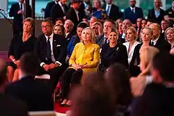 The presentation of the Olena Zelenska Foundation took place on September 22, 2022, at a charity evening in New York.[2] The event was attended by former US Secretary of State Hillary Clinton, British Foreign Minister James Cleverly, General Director of the Metropolitan Opera in New York Peter Gelb, American TV presenter and actor Jimmy Fallon, actor Matt Damon, actress Brooke Shields, as well as diplomats and businessmen.[2] Ukrainian pop stars Tina Karol and Julia Sanina performed at the charity evening.[3] Andriy Bednyakov became the host of the evening.[4] The President of Ukraine Volodymyr Zelenskyy joined the charity evening in an online format from Kyiv.[5]