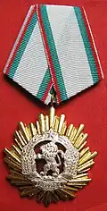 Awarded to foreign citizens for the establishment and strengthening of friendly international relations with The Republic of Bulgaria. If awarded for Military relationships the award was presented with swords. Designed by V. Starchev and K. Damyanov. | ||