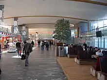 The east pier of the original terminal is for international flights. The gates for Schengen area flights are E-gates while the F-gates for the non-Schengen area are at the easternmost end of the terminal.[53] An expansion to the non-Schengen end of the east pier was opened during the summer of 2022.[54] Four gates near the end of the east pier are flexigates where doors can be opened or closed to switch between Schengen and non-Schengen flights.[55] EU controllers have been somewhat skeptical of the Schengen/non-Schengen flexigates, and there were a few incidents where the wrong doors were opened so that passengers who should have gone through the border control did not.[56]