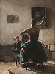 They shared a studio in Saint-Josse-ten-Noode and often served as models for each other. A large inheritance from their family enabled them to lead a Bohemian lifestyle.[1] David married in 1866, which proved to be a difficult adjustment for Pieter, but he was eventually reconciled to it. In 1875, they began to achieve some success.[3] The critic Camille Lemonnier praised their work, which led to numerous sales and commissions. In 1880, David won a gold medal at the triennial Brussels Salon. They began exhibiting more widely, including a large display at the Exposition Universelle (1889).[2]