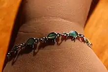Pāua shells are frequently used to represent eyes of human and animal figures in Māori carvings, and used as decorations on skirts, cloaks and in earrings.[3] Pāua is traditionally are associated with the stars or whetū, the symbolic eyes of ancestors that gaze down from the night sky.
