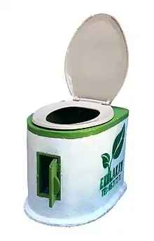 Container-based sanitation (abbreviated as CBS) refers to a sanitation system where toilets collect human excreta in sealable, removable containers (also called cartridges) that are transported to treatment facilities.[1] This type of sanitation involves a commercial service which provides certain types of portable toilets, and delivers empty containers when picking up full ones. The service transports and safely disposes of or reuses collected excreta. The cost of collection of excreta is usually borne by the users. With suitable development, support and functioning partnerships, CBS can be used to provide low-income urban populations with safe collection, transport and treatment of excrement at a lower cost than installing and maintaining sewers.[2] In most cases, CBS is based on the use of urine-diverting dry toilets.