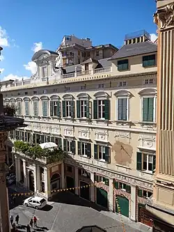 Salvatore Pintacuda served as interim director of the conservatory from 1964 until composer Gino Contilli was appointed director in 1966.[27] The conservatory purchased the Villa Sauli Bombrini Doria in Albaro in 1962 with the intent of moving into the premises.[28] Repairs and necessary alterations to that building prevented the school from moving into that location for several years, and the inadequacies of the Villa Raggio required that the school temporarily relocate to the Palazzo Gerolamo Grimaldi (also known as the palazzo della Meridiana) during the 1960s.[27]