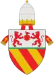 ![]() | Gules a lion rampant or debruised by a bend azure, on a chief of the field, soutenu by a divise of the last, three escallops of the second. | Innocent VI (Étienne Aubert, 1352–1362) | |